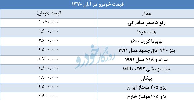 پیکان صفر ۱ میلیون و ۷۰۰ و پژو ۴۰۵ هم ۲ میلیون و ۵۰۰ هزار تومان بود.
