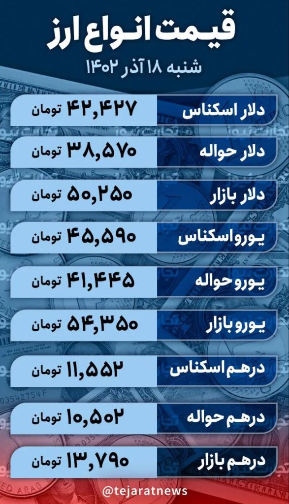 قیمت دلار امروز ۱۸ آذر ۱۴۰۲
