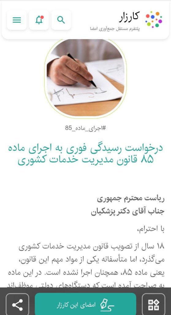 درخواست رسیدگی فوری به اجرای ماده ۸۵ قانون مدیریت خدمات کشوری