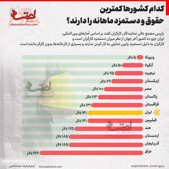 مقایسه حقوق کارگران ایرانی با کشورهای دیگر جهان + اینفوگرافی