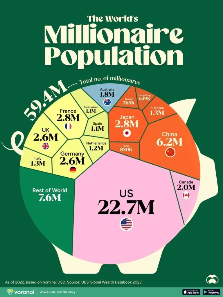 کیان آنلاین – روزیاتو در گزارشی نوشت: تا سال ۲۰۲۲، جهان تقریباً ۶۰ میلیون میلیونر داشته است که ۴۲٪ آنها در آمریکای شمالی ساکن هستند.