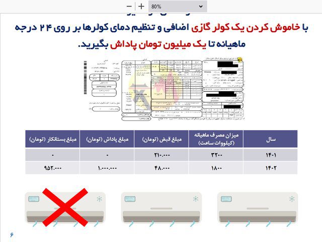 اگر در این مناطق نسبت به سال گذشته یک کولر خاموش شود یک میلیون تومان پاداش به مشترک داده خواهد شد.