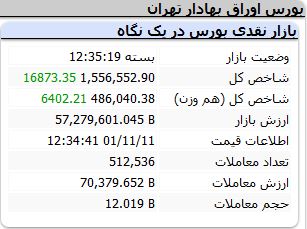 در پایان معاملات بازار امروز شاخص کل در نهایت با رشد بیش از ۱۶ هزار واحدی به کار خود پایان داد. ارزش بازار در پایان معاملات امروز ۵۷,۲۷۹,۶۰۱.۰۴۵ میلیارد ریال، ارزش معاملات ۷۰,۳۷۹.۶۵۲ میلیارد ریال و حجم معاملات ۱۲.۰۱۹ میلیارد سهم است.