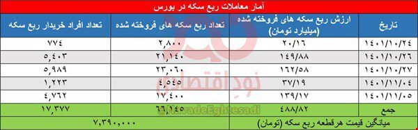 چقدر ربع سکه در بورس فروخته شد؟/ چقدر نقدینگی جمع آوری شد؟
