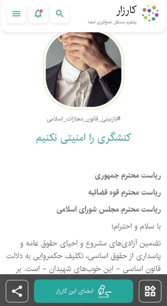 به گزارش کیان آنلاین ،هر شهروند حق دارد نظرات خود را آزادانه بیان کند، در تجمعات مسالمتآمیز شرکت نماید، و در فعالیتهای مدنی و سیاسی مشارکت داشته باشد. هیچکس نباید به دلیل استفاده از این حقوق، تحت تعقیب کیفری قرار گیرد.