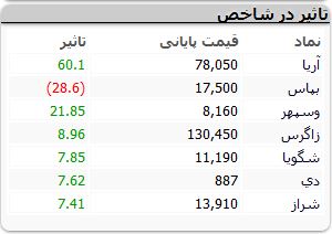 نمادهای تاثیرگذار بر شاخص کل فرابورس در معاملات امروز آریا، بپاس، وسپهر، زاگرس، شگویا، دی و شراز هستند.